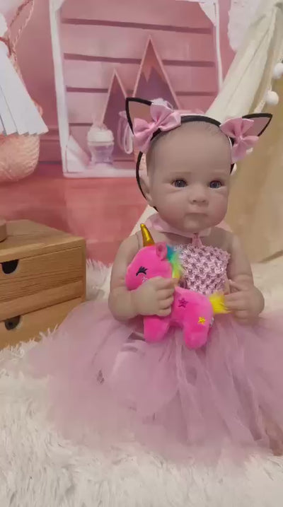• Zachte huid en realistische details – van haar mini teentjes tot haar wimpers